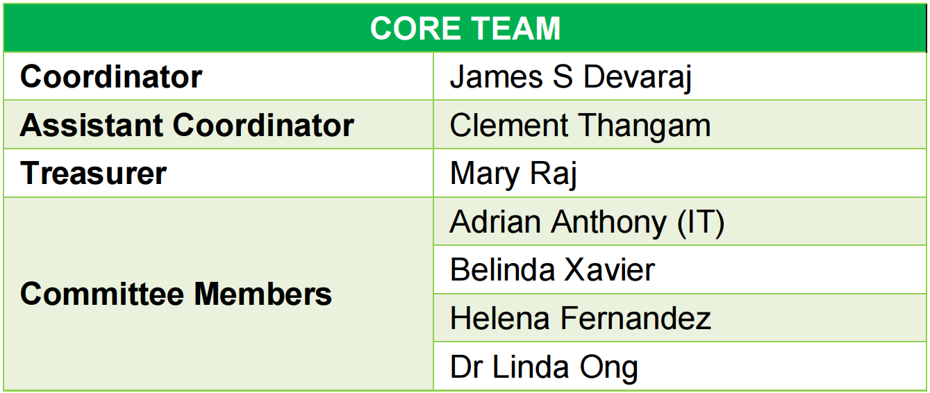 Our activities are limited to a minimum due to the current pandemic situation. Most of our members are senior citizens and are not comfortable using Zoom for gatherings and meetings. We continuously encourage all members to follow online Masses especially Sunday Masses, Way of the Cross, Rosary devotions and other important events. Together with some younger members including committee members, we do participate in Monthly Gatherings on Reflection Paper and other events organised by BECCOT.