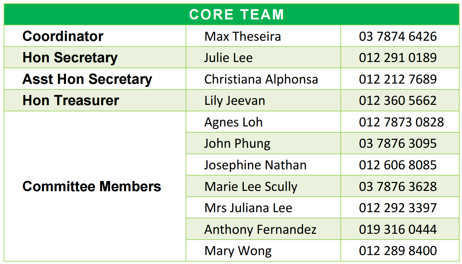 - Core and Prayer Meetings