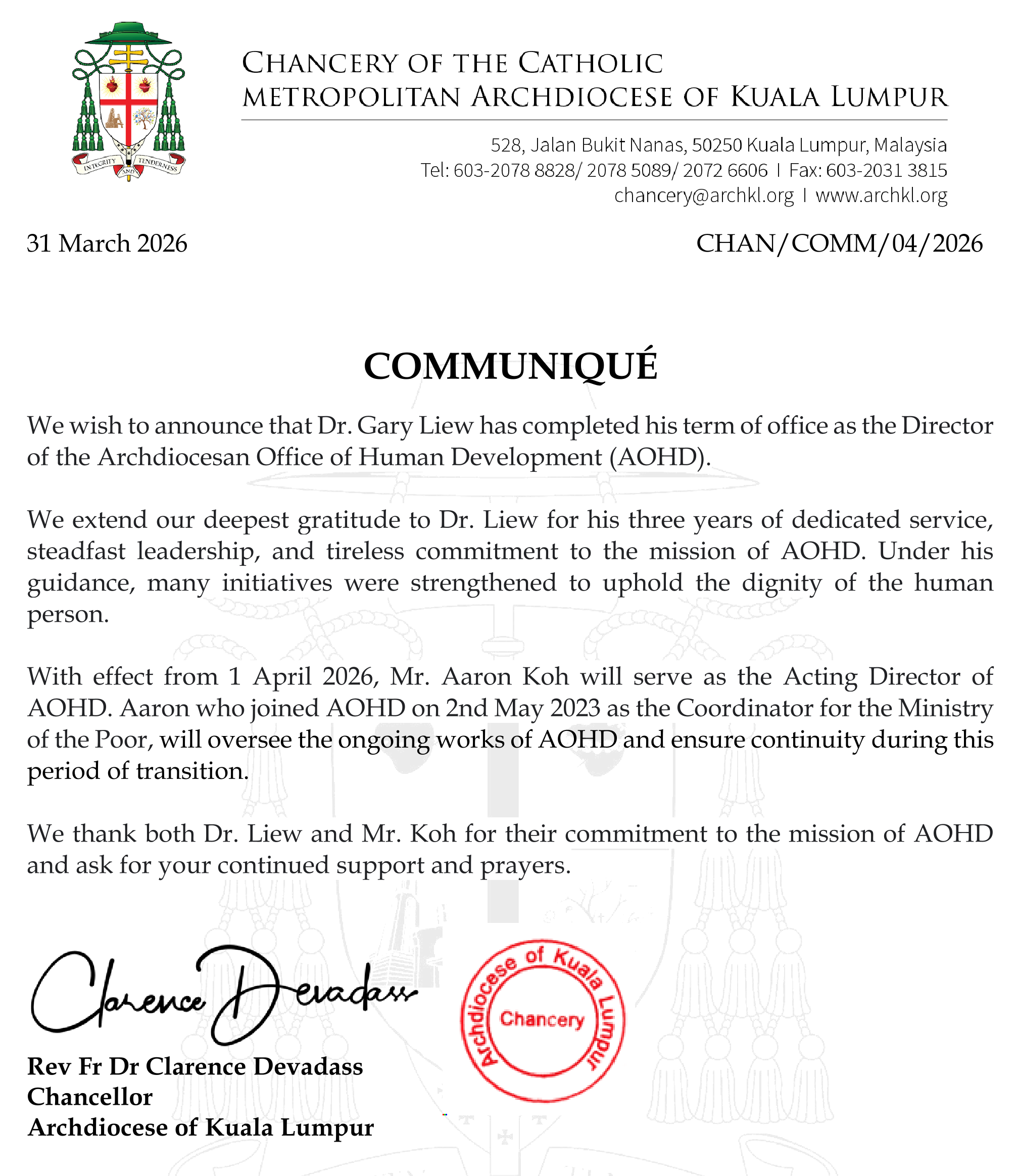 Director of the Archdiocesan Office of Human Development (AOHD)