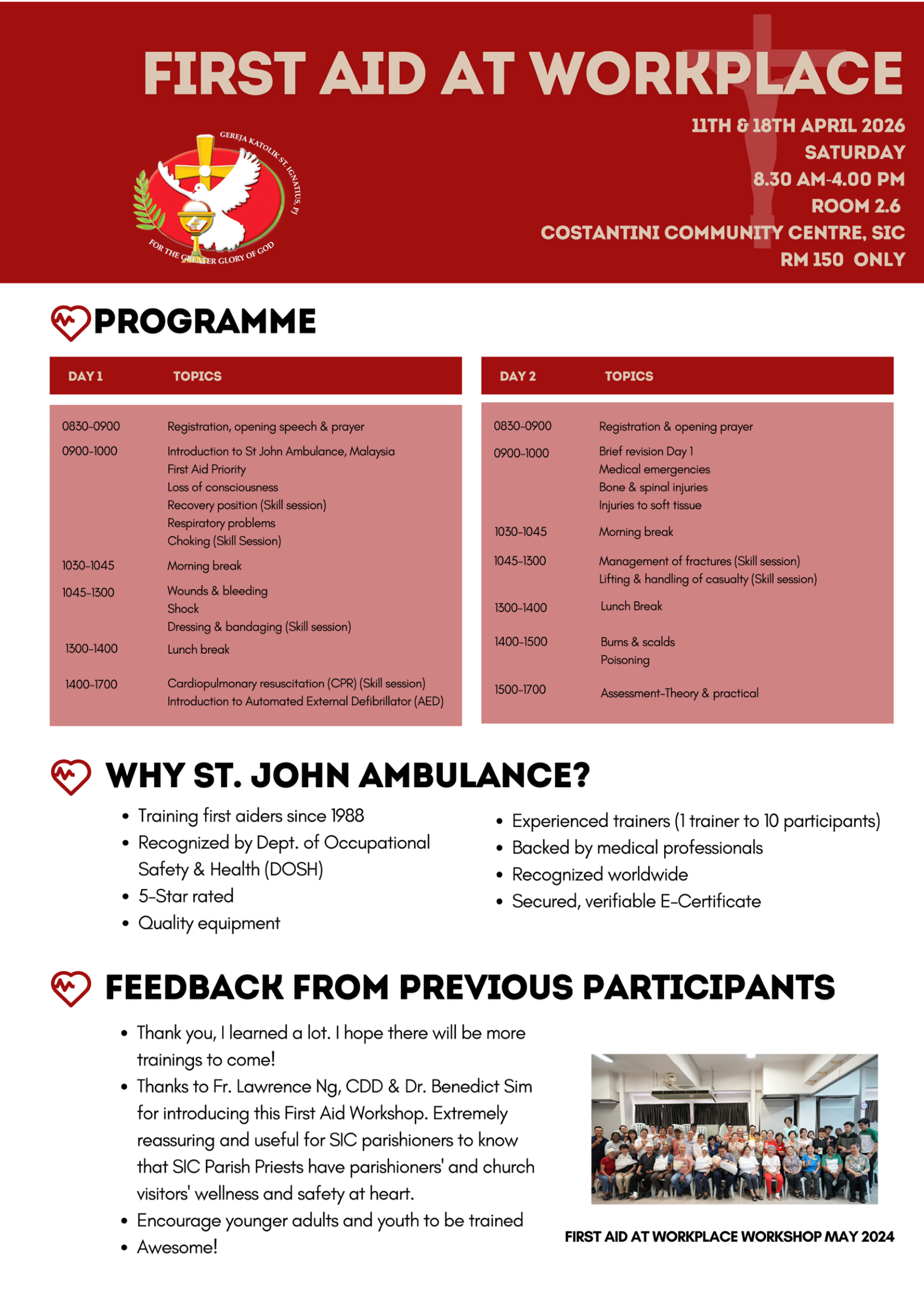 11 & 18 Apr @ SIC – Registration Open Apr 16, 2026 Learn life-saving skills from the experts. Please sign up at Google Form.
