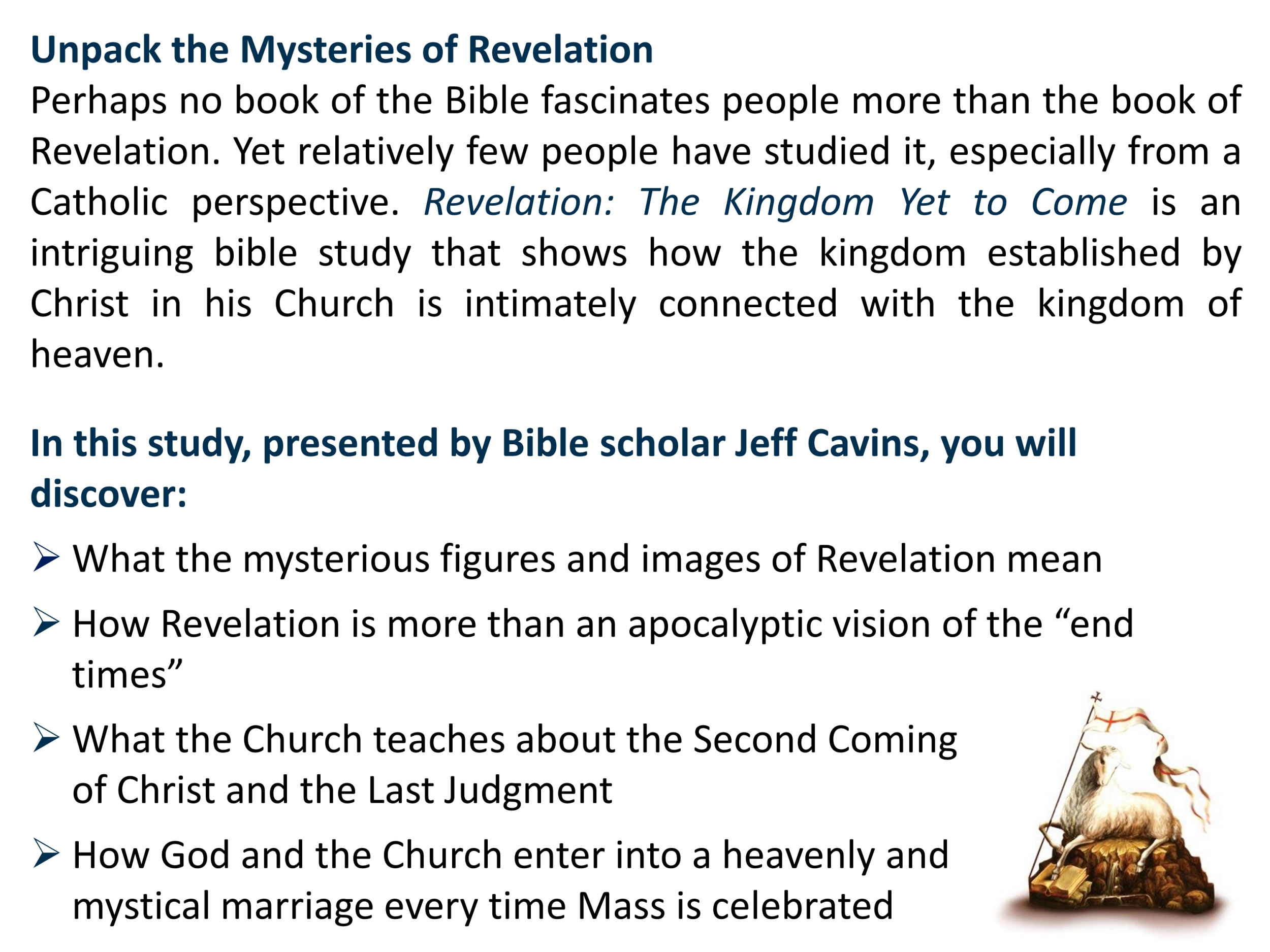 Modules conducted prior to 2010 (using materials produced by Little Rock Scripture Study based in Arkansas, USA) include: